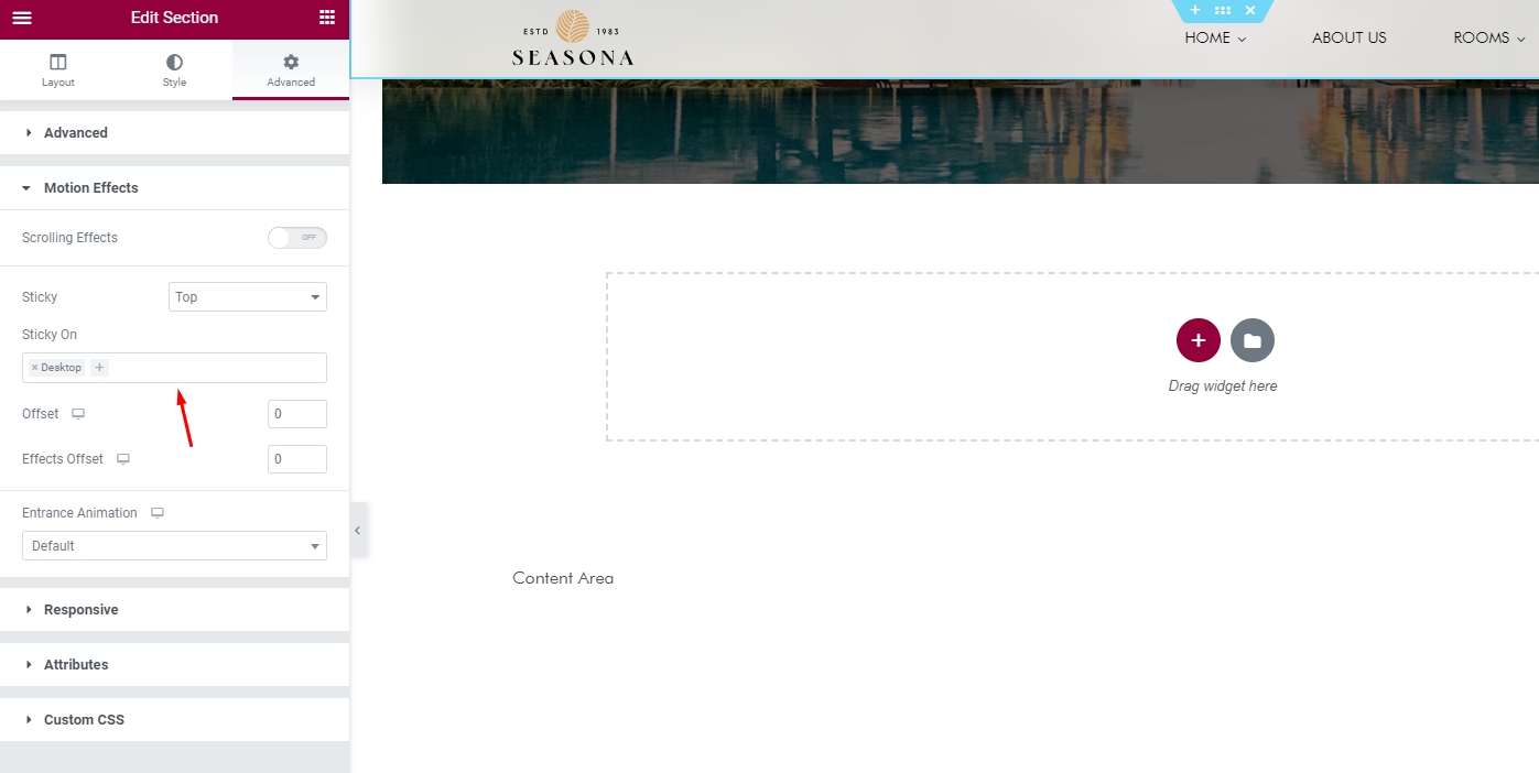 To make sure your header sticks to the top as users start scrolling, you can use Elementor’s Motion Effects feature.