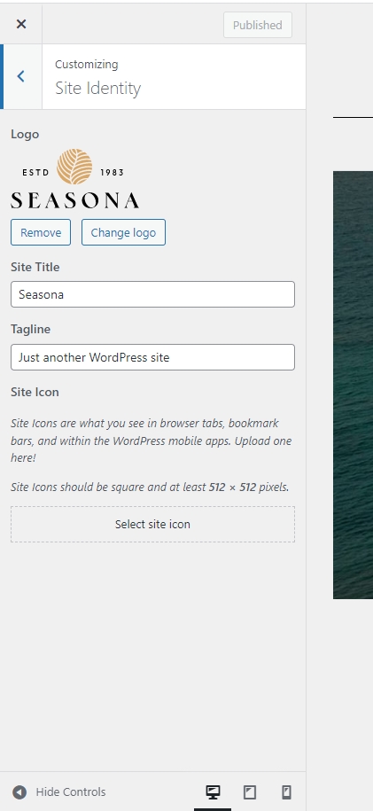 Step 2: Choose Site Identity: Remove and change logo for website. Besides, you can set title and tagline for website