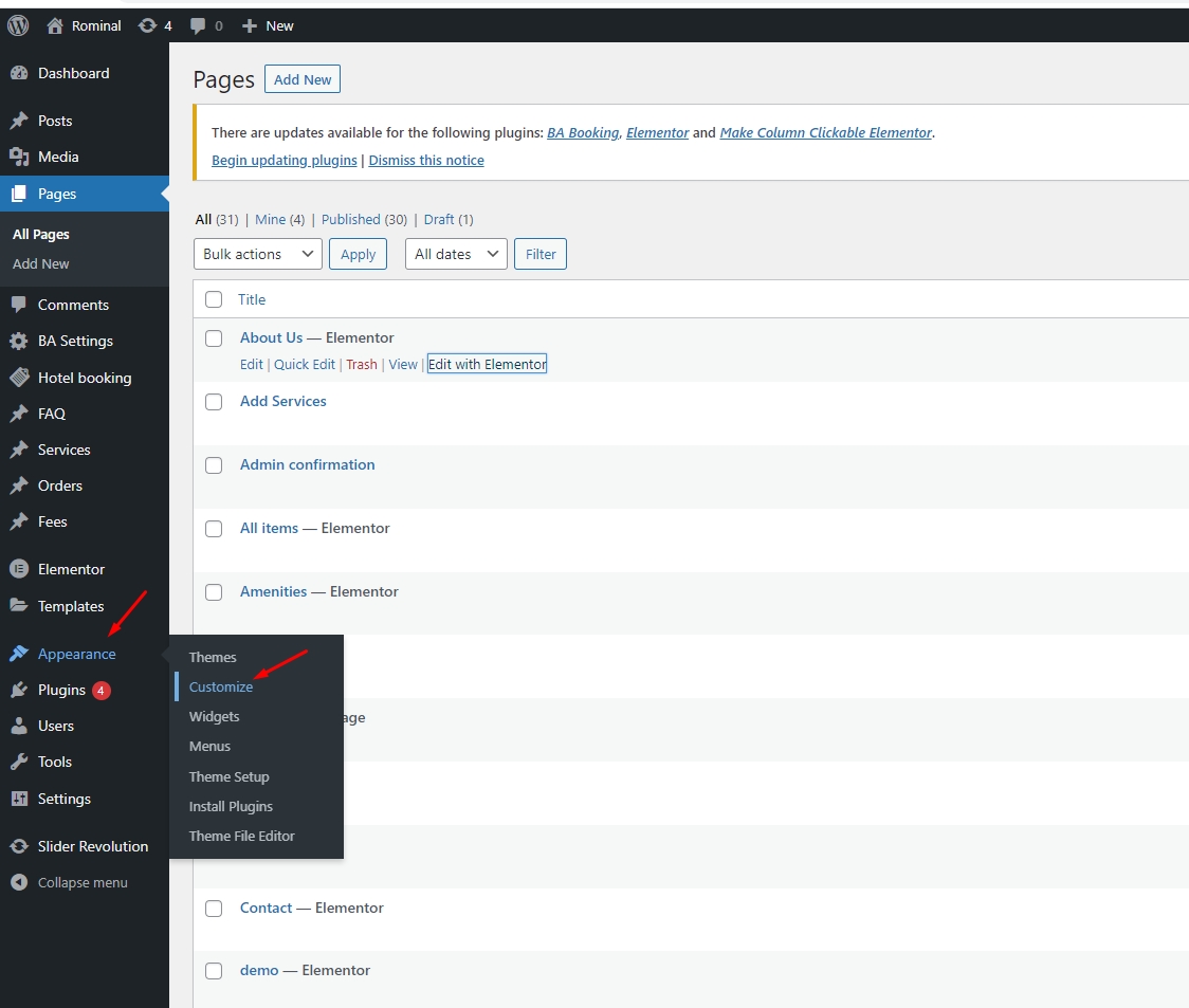 Step 1 At WordPress Dashboard >> Appearance >> Customize