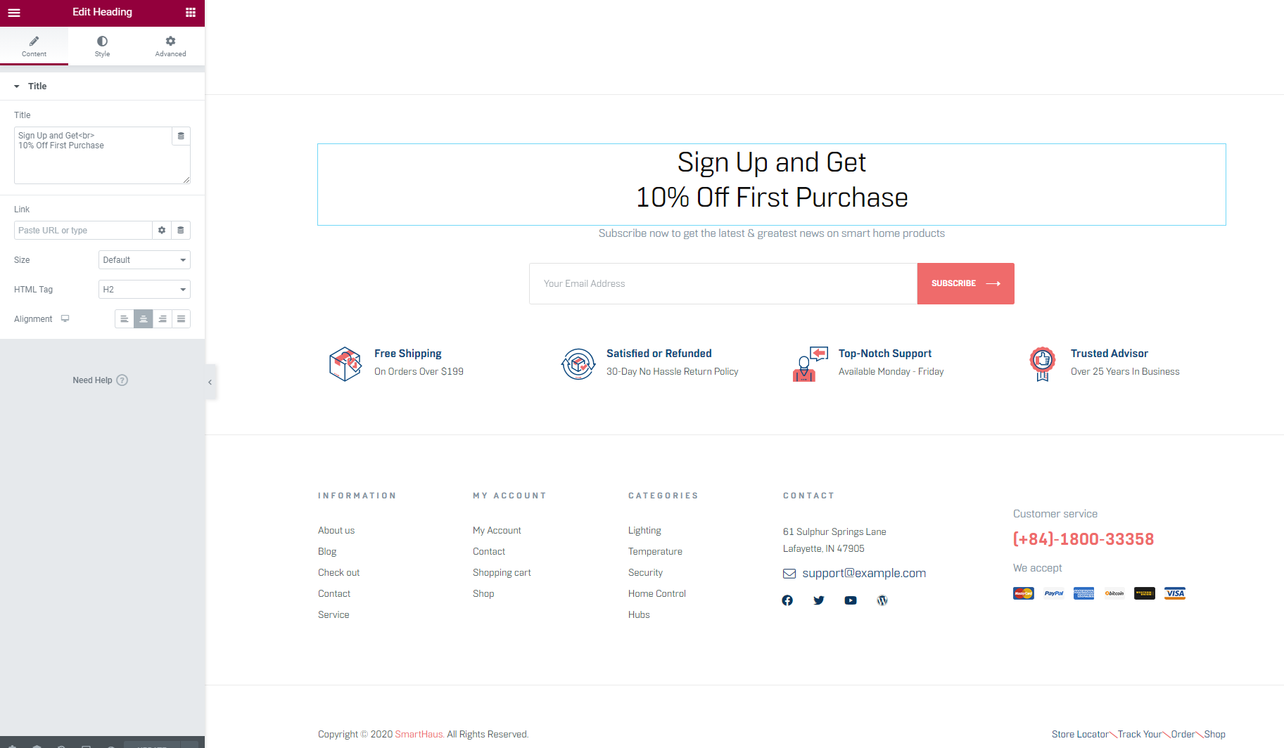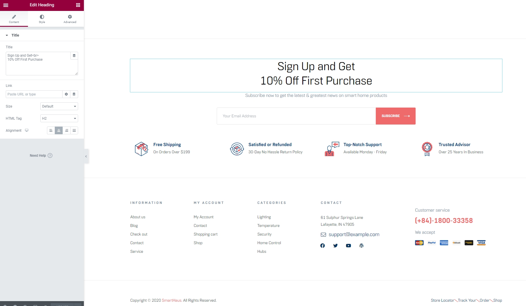 Step 5 - Edit the display of your Header Footer & Blocks Template that can add the created template to the page.