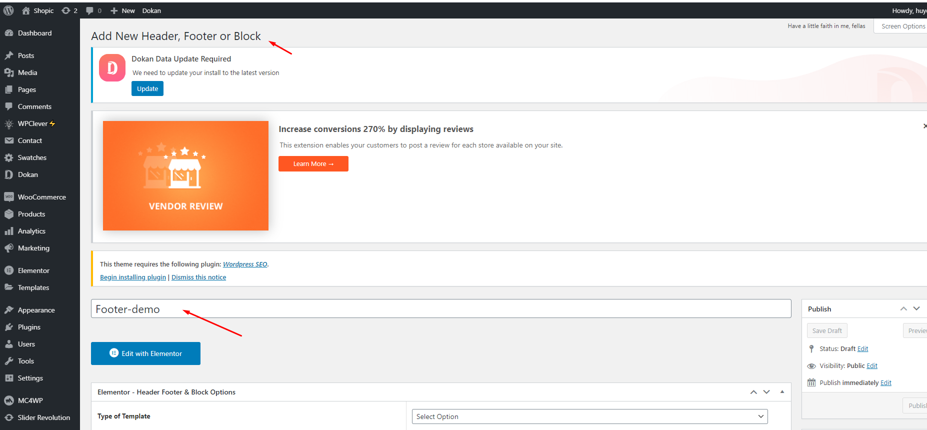 Step 1 Go to WordPress Dashboard > Appearance>Header Footer & Blocks> Add New