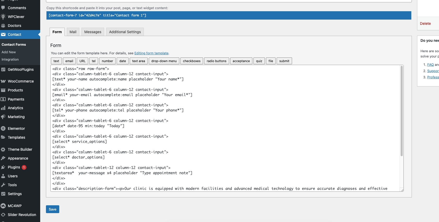 Step 2 - After installing this plugin, go to Contact > Contact Forms > Add New/ Edit a Contact Form and use the following this mark-up and paste it to your form( You can edit the text "Name", "Email", "Subject", "Your Message", "Submit" to the text as you want ):