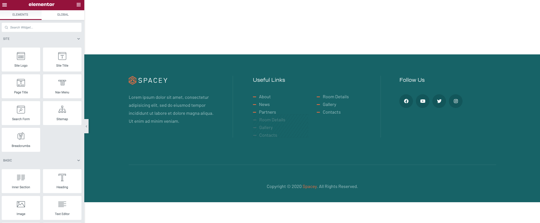 Step 3 - Using Elementor backend editor Spacey then add element to your Template