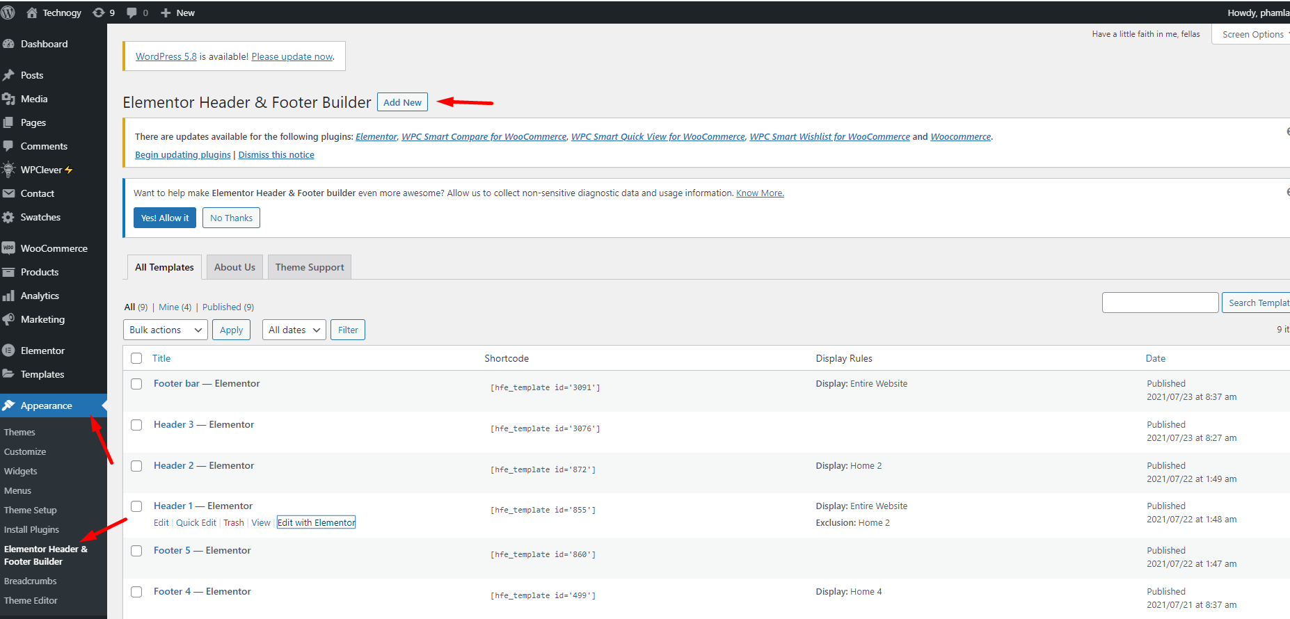 Go to WordPress Dashboard > Appearance > Header & Footer Builder > Add new > Edit with Elementor