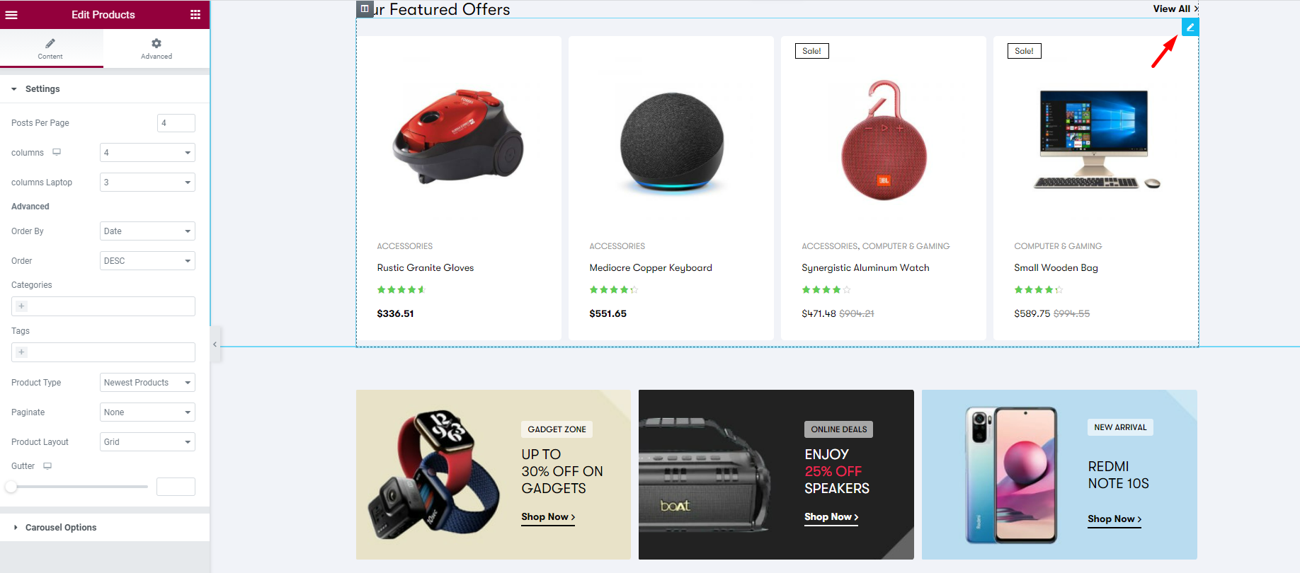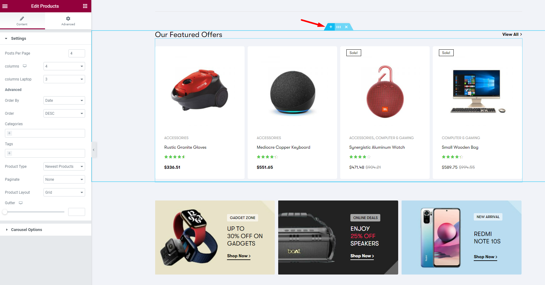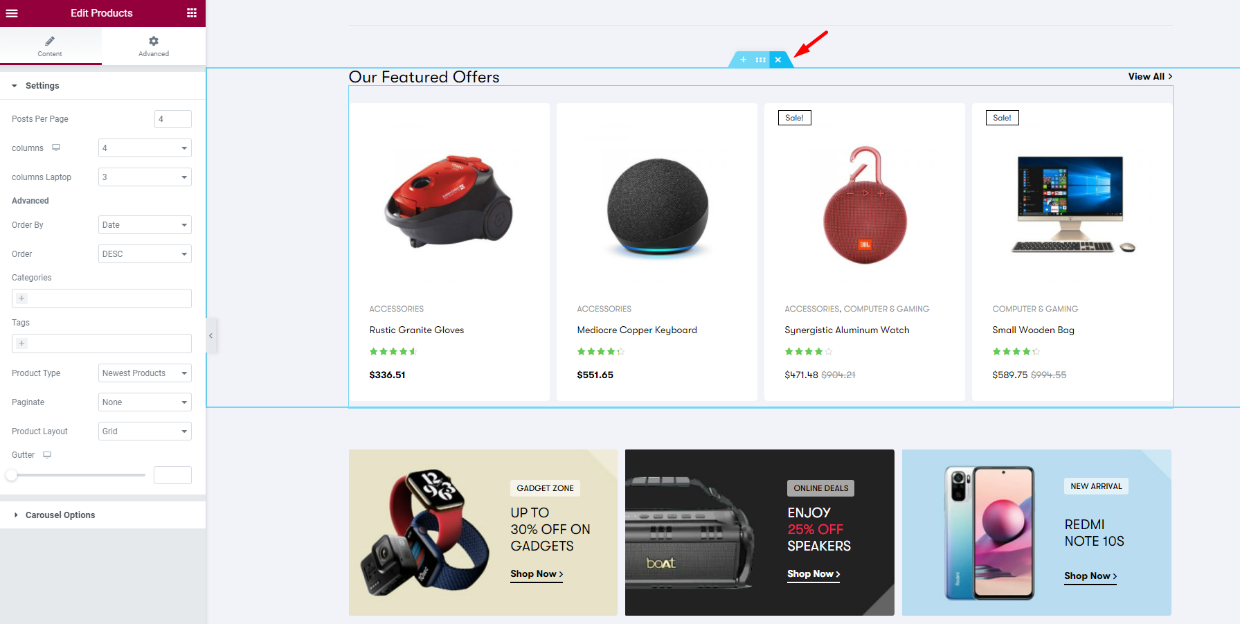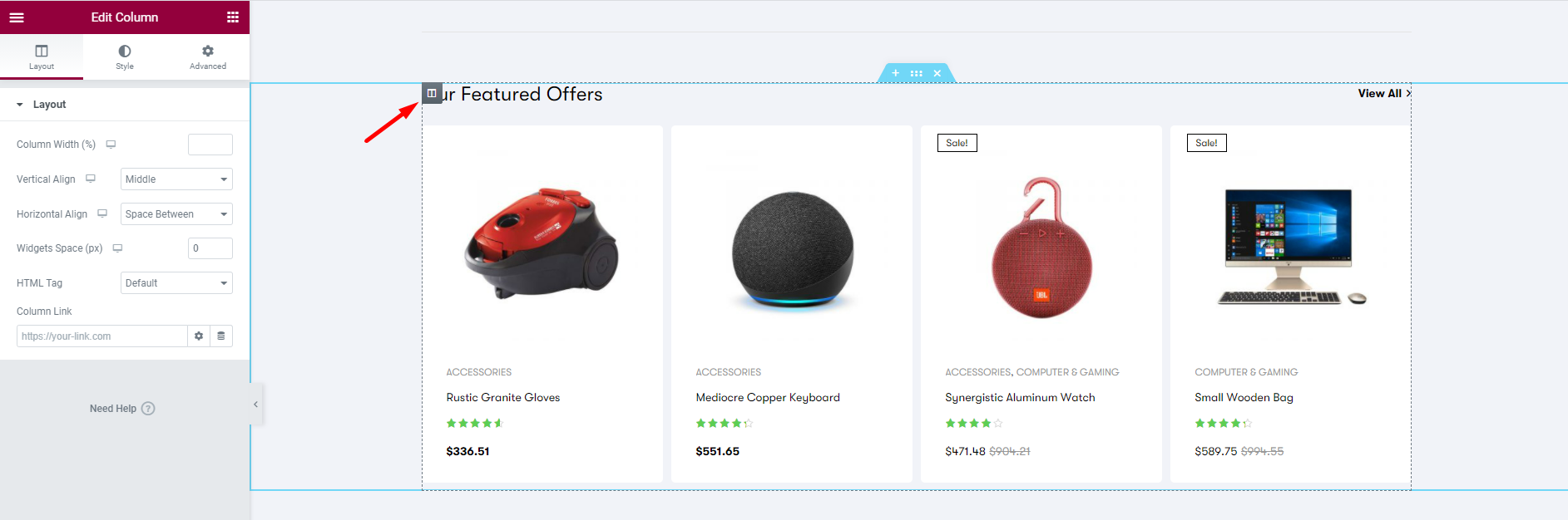 Step 3 - To change the Row layout ( number of columns ) you need to click button content will display in leftsidebar.