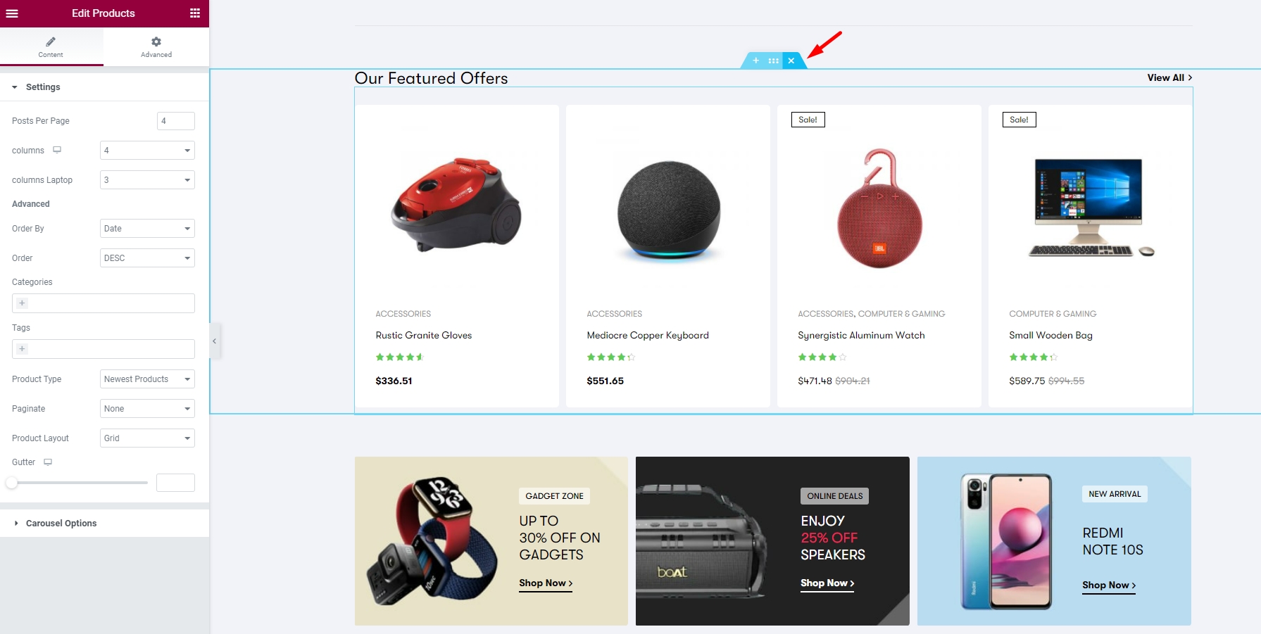 Trash Box Icon - To Remove Row, Column or Module you need to click the Trash Box icon.quick view