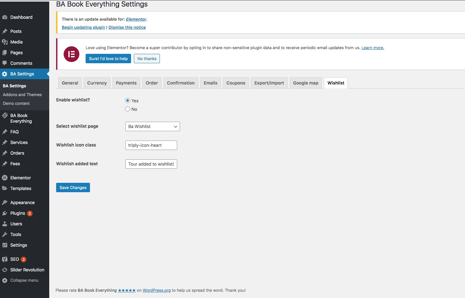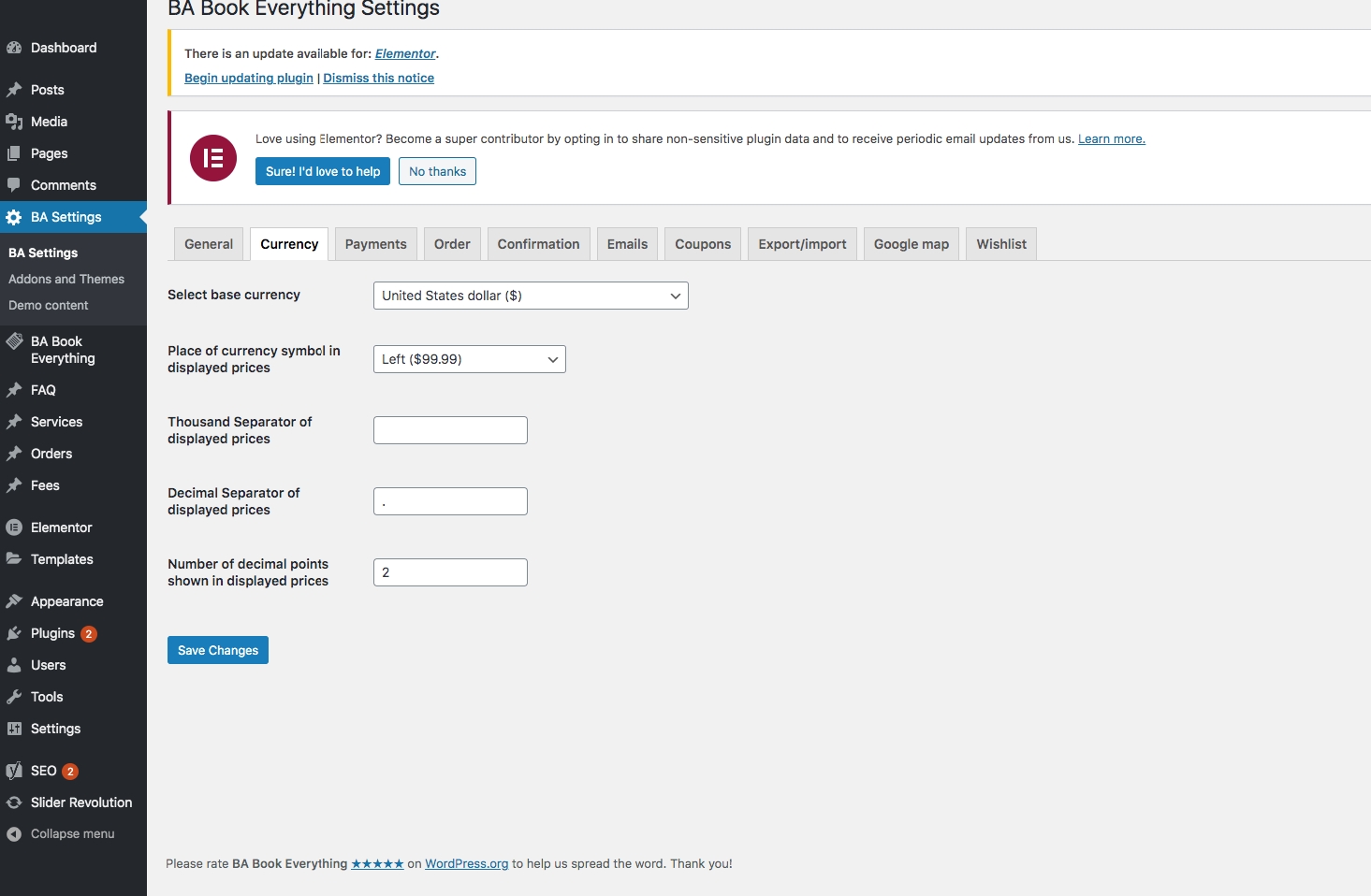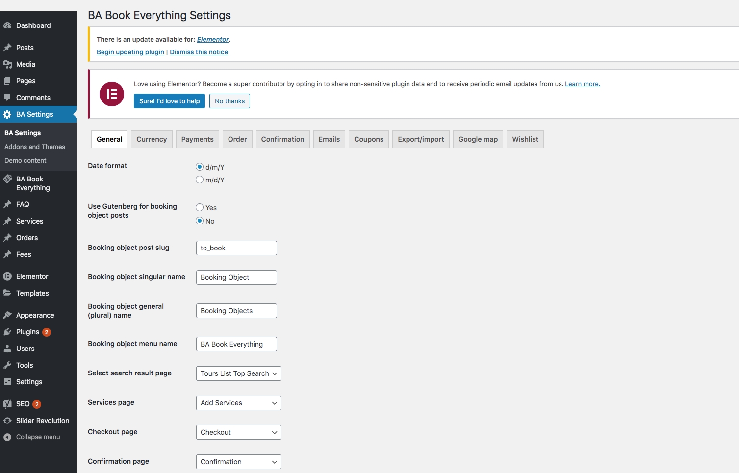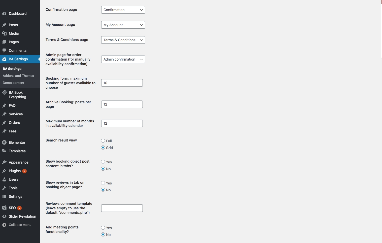 At the beginning you have to configure booking engine from BA Settings menu. Most of the settings can be used with their default values. But some of them you may want to change.