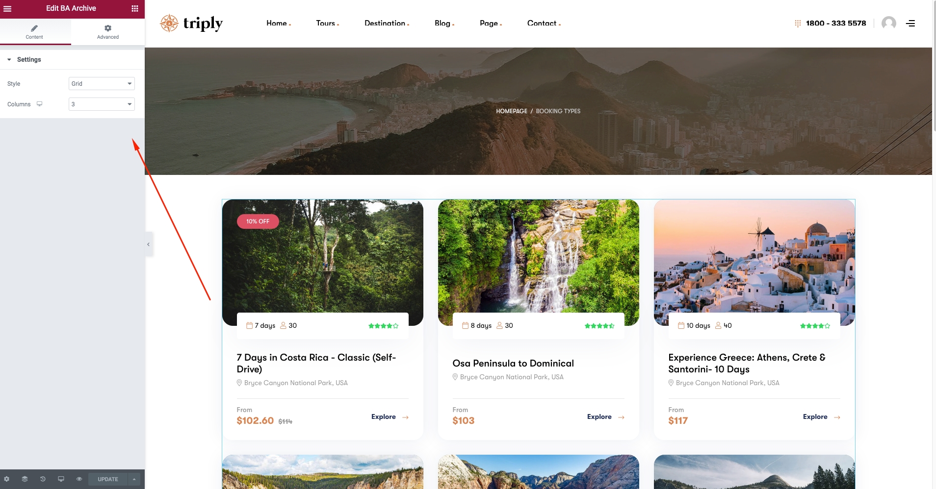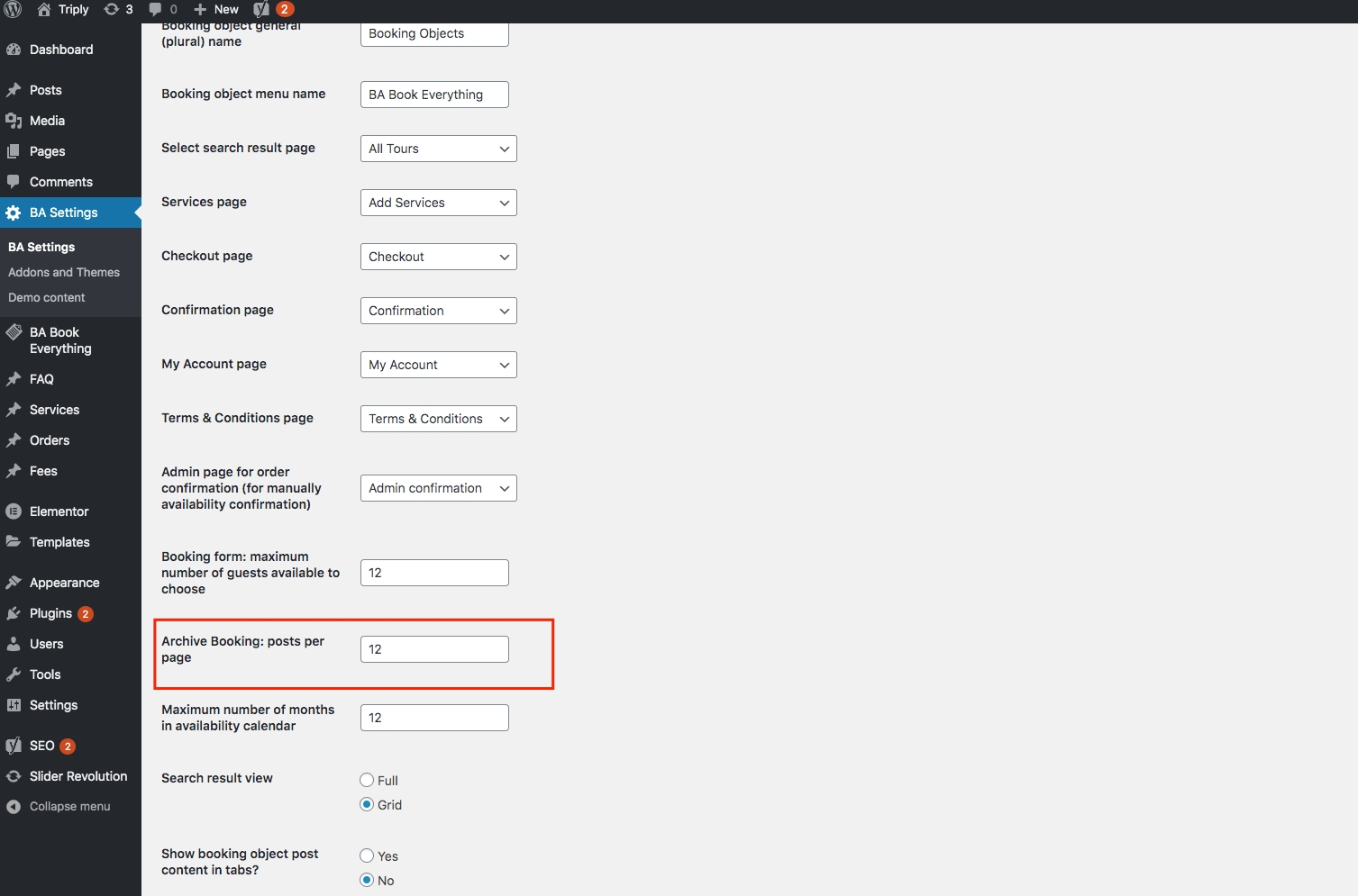 On Templates -> add new template Booking Types and add BA Archive widget.