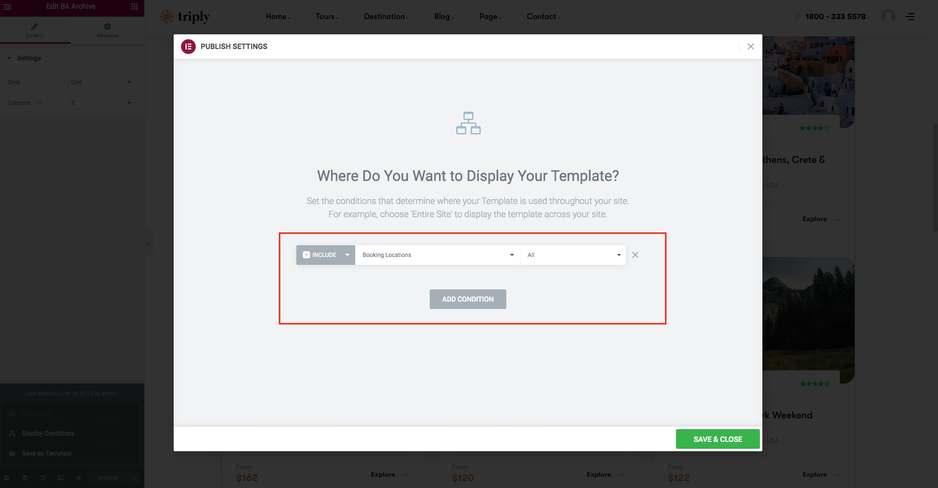 Save Template -> Display Conditions -> Select include Booking Locations. -> Save and close