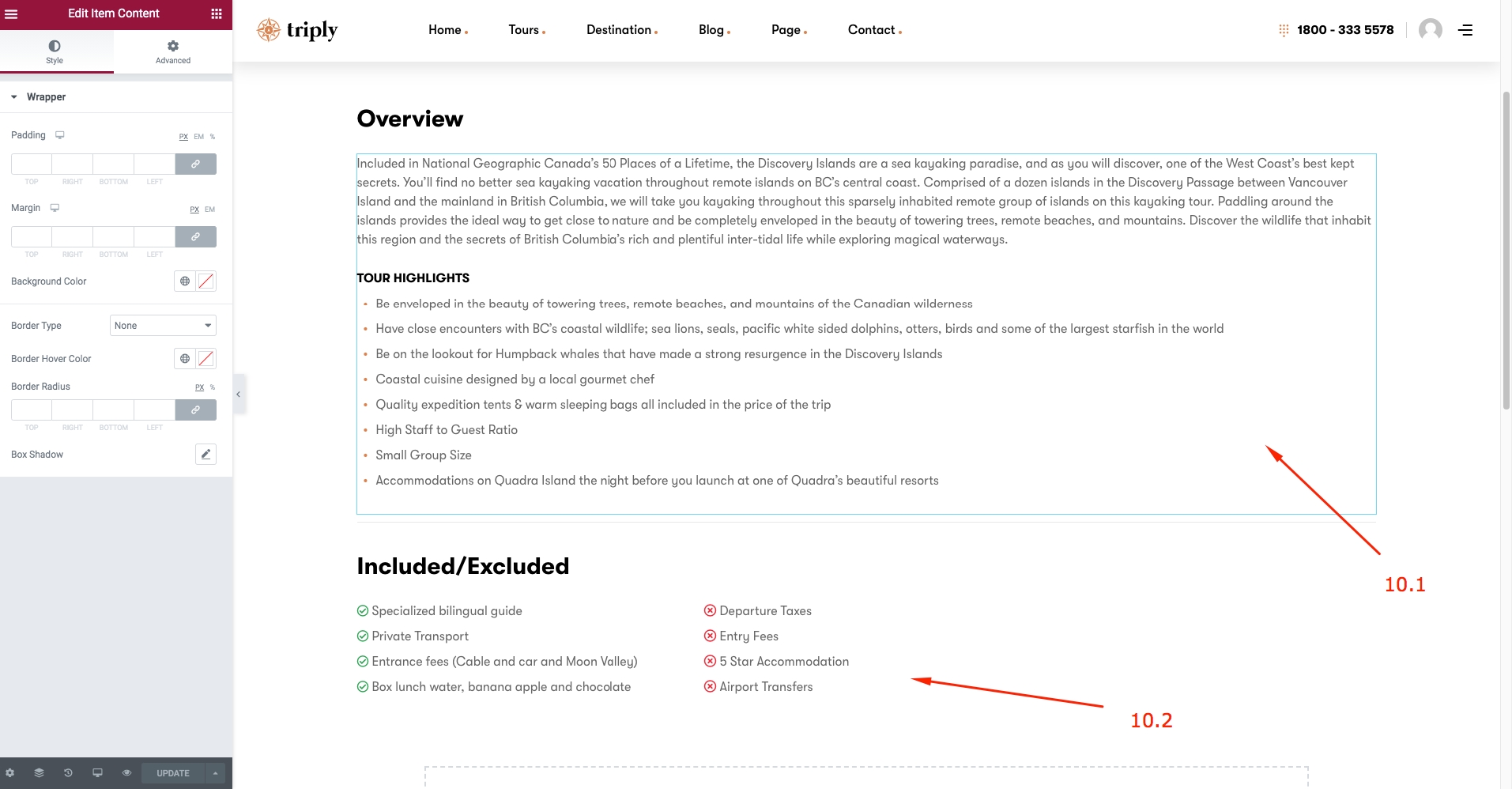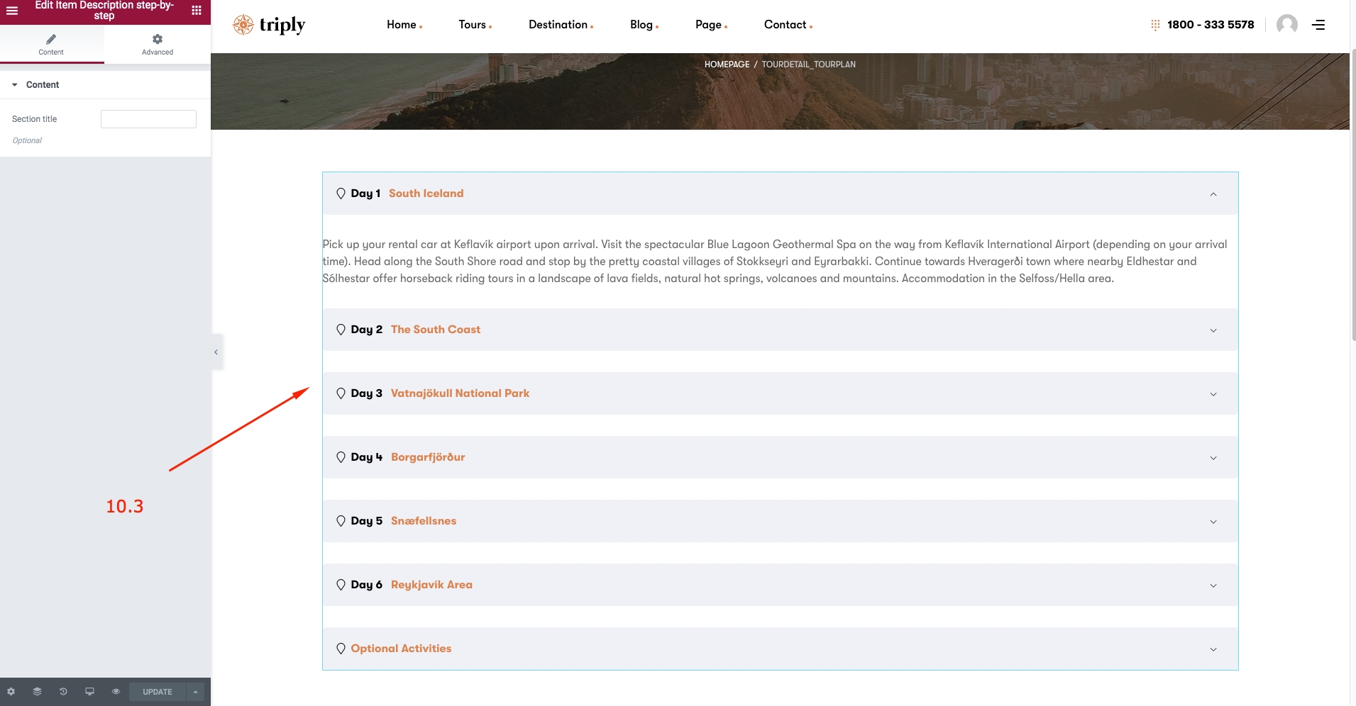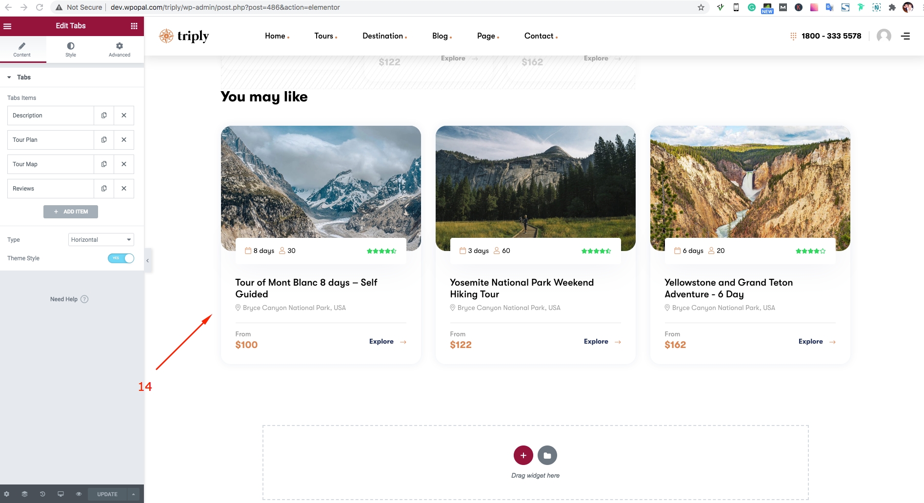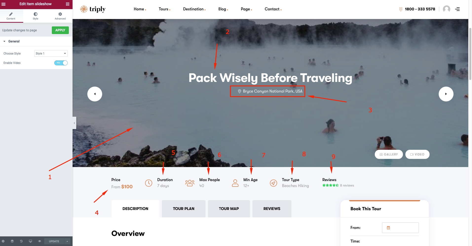 Triply theme use Elementor builder to build page single tour, has 3 Single tour template with 3 style