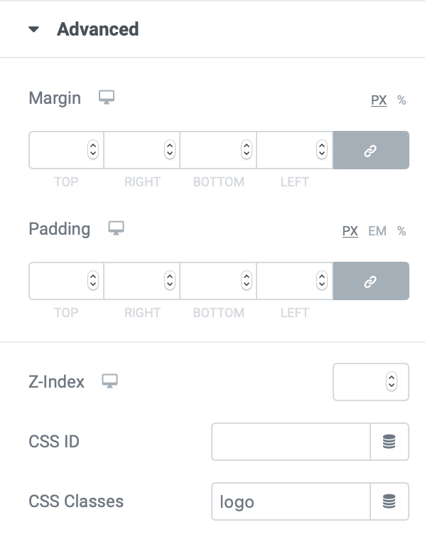 Finally, open the image widget that contains your logo and go to the Advanced tab. Then, set your logo image’s CSS Classes field equal to logo: