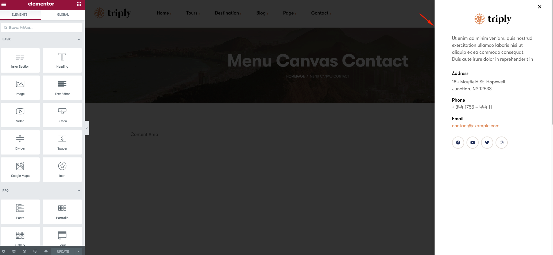 menu canvas contact