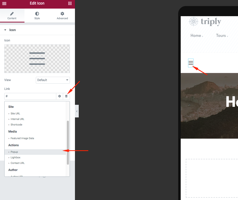 Header Button Popup