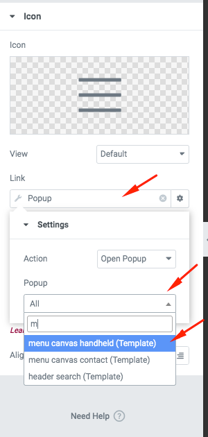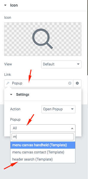 menu popup search