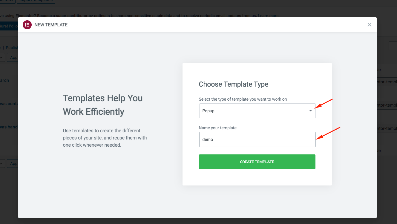 You can create a new popup template >> Templates >> Popups >> Add New