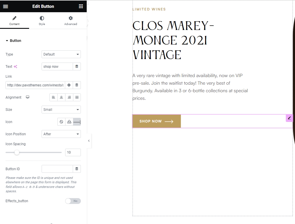 Step 2 - Site Settings >> Button >>