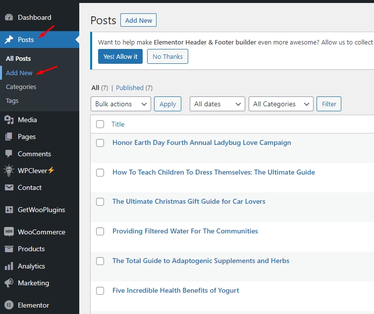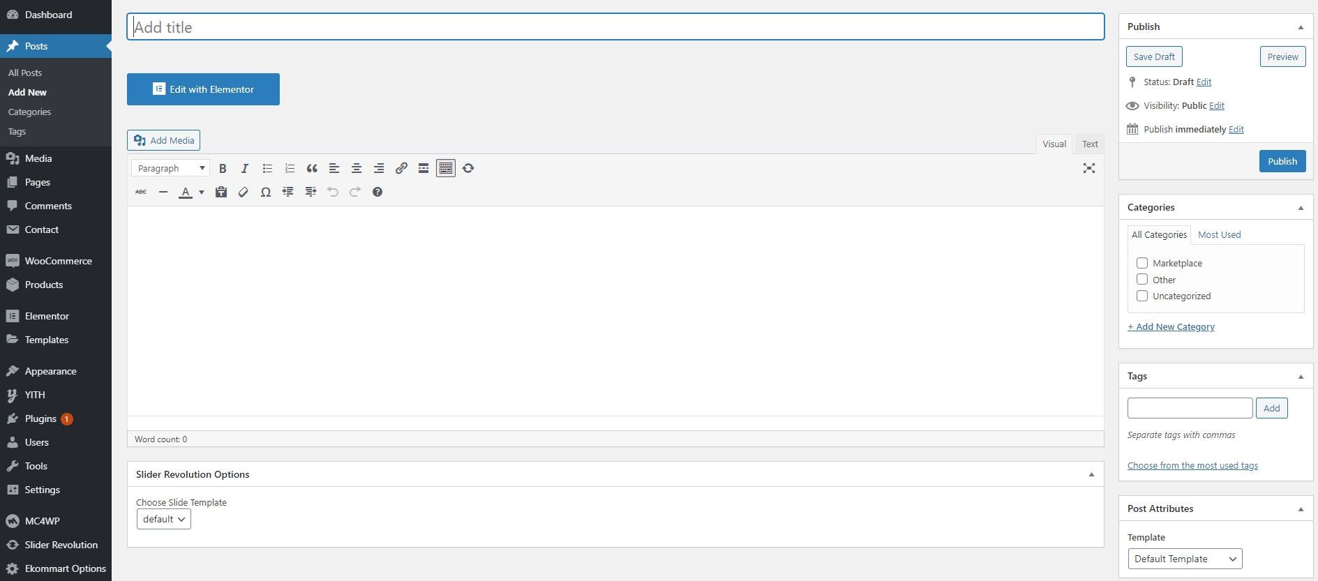 Step 4 - Start filling in the blanks: enter your post title in the upper field , you can add content of post by use elementor to create.