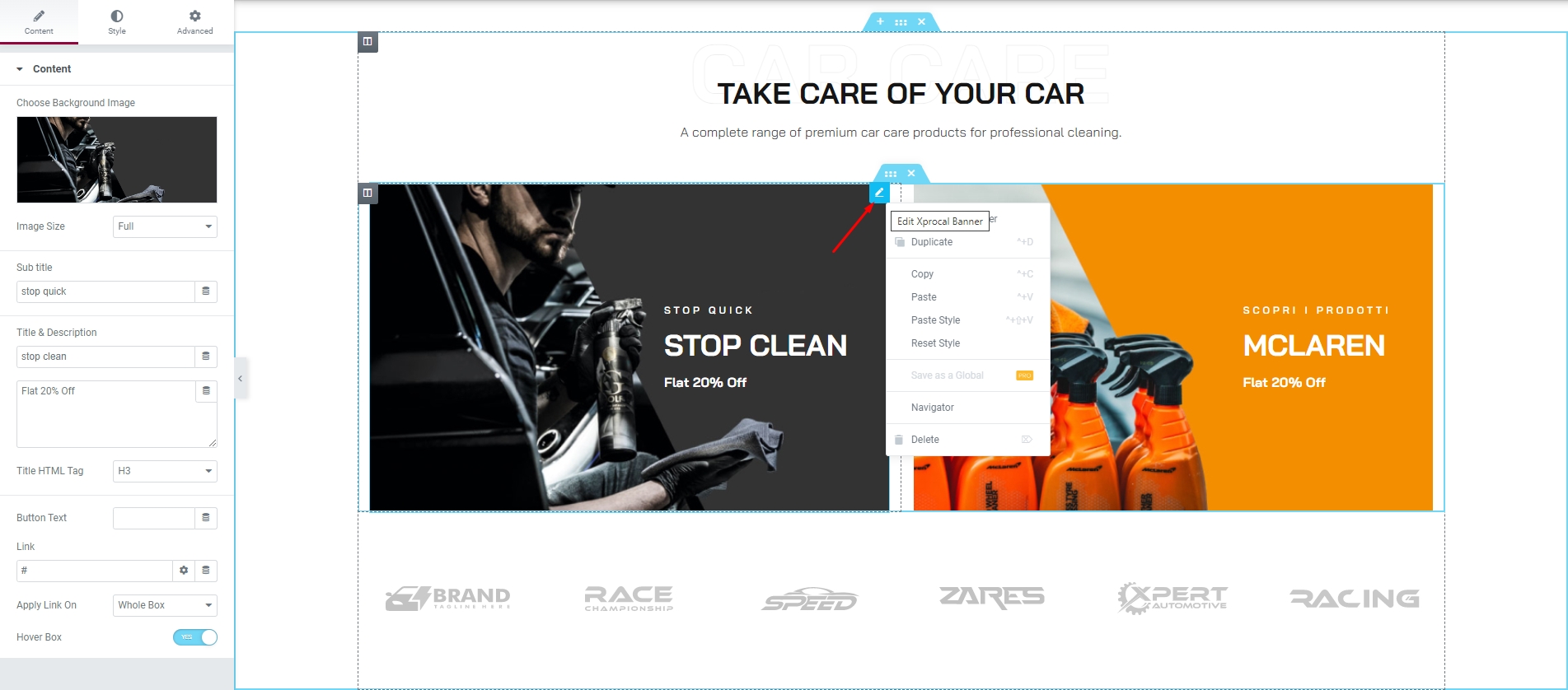 Click on the Edit This Element (pencil icon) to Edit the Row element, when you click to button all content will display in the left sidebar follow you can change it.
