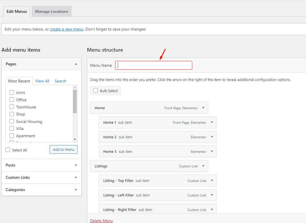 Step 4 - Enter a name for your new menu in the Menu Name box.