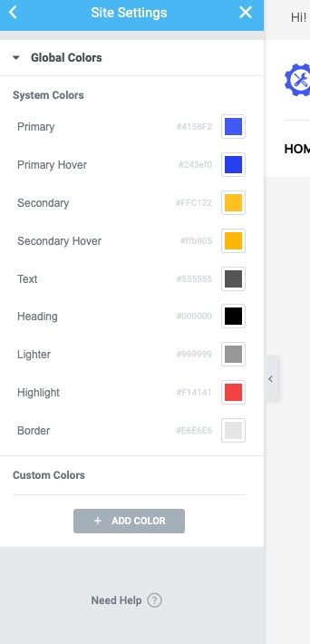 Step 2 - Site Settings >> Global Colors >>